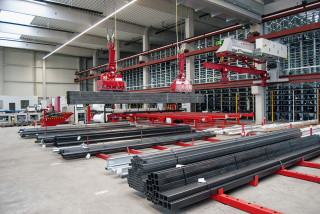 Das vollautomatische Hochregallager des renommierten Herstellers Fehr konnte im Sommer 2016 an unserem eigens dafür errichteten „Standort II“ in Betrieb genommen werden. Mit einer Höhe von 11,4 Metern, einer Breite von 23,00 und einer Länge von 40 Metern ist das innovative Lagersystem für Langgut bis 6 Meter Länge geeignet. 1500 Lagerplätze mit einer Nutzlast von 3 Tonnen je Kassette versorgen Pader-Stahl mit einer zusätzlichen Lagerkapazität von 4.500 Tonnen – kein Lagersystem bietet mehr Kapazität bei gleichem Raumbedarf!