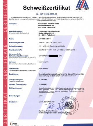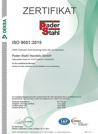 Qualität ist bei Pader-Stahl viel mehr als nur ein Wort! Neben dem Ehrgeiz, unsere Kunden im Service ebenso wie bei der Produktauswahl bestmöglich zu betreuen, stellen wir uns auch unserer Verantwortung in den Bereichen Qualitätssicherung, Gesundheits- und Umweltschutz sowie Unfallverhütung. Zertifizierungen nach EN ISO 9001-2015 und EN 1090 belegen unseren hohen Qualitätsanspruch.